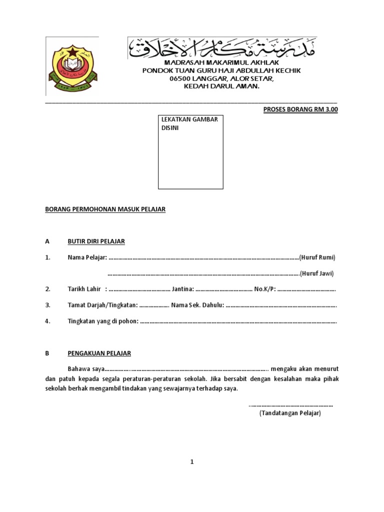 Borang An Kemasukan Pelajar Barugambar Pdf